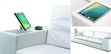 Priced at $15,436, the Athena could quite possible be the first and only sofa with an integrated PC. While technical specifications haven't been released, "we're guessing that those integrated screens that fit so snugly into the armrests feature touch sensitivity." Click here for one more picture.